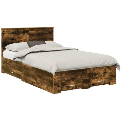 vidaXL Bed Frame with Drawer Smoked Oak 120 x 190 cm Engineered Wood