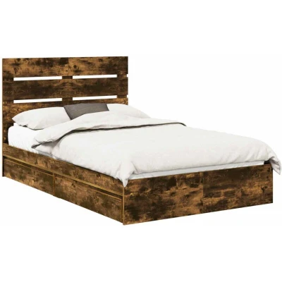vidaXL Bed Frame with Drawer Smoked Oak 135 x 190 cm Engineered Wood