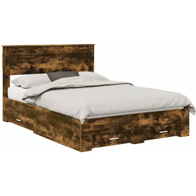 vidaXL Bed Frame with Drawer Smoked Oak 150 x 200 cm Engineered Wood