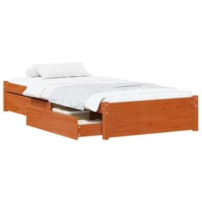 vidaXL Bed Frame with Drawer Storage 3 pcs Wax Brown Pine Wood