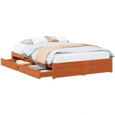 vidaXL Bed Frame with Drawer Wax Brown 160 x 200 cm Solid Pine Wood