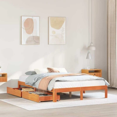 vidaXL Bed Frame with Drawers Wax Brown 140x200 cm Solid Wood Pine