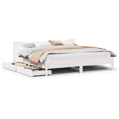vidaXL Bed Frame with Drawers White 200x200 cm Solid Wood Pine