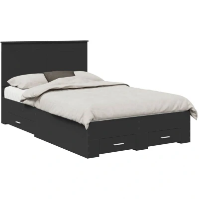vidaXL Bed Frame with Headboard Black 135 x 190 cm Engineered Wood