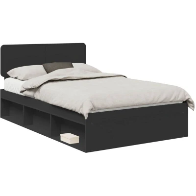 vidaXL Bed Frame with Headboard Black 135 x 190 cm Solid Pine Wood