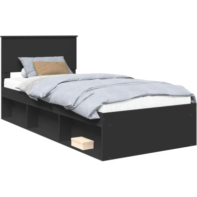 vidaXL Bed Frame with Headboard Black 90 x 200 cm Solid Pine Wood
