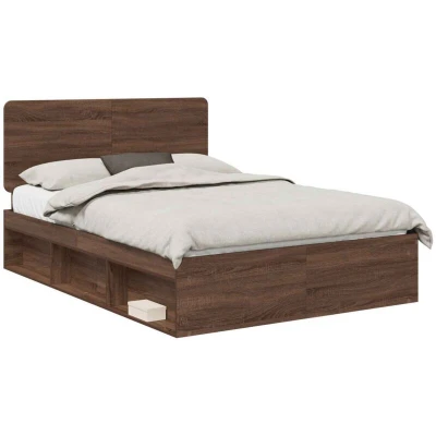 vidaXL Bed Frame with Headboard Brown Oak 140 x 200 cm Solid Pine Wood