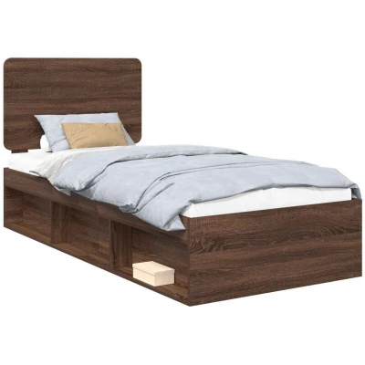 vidaXL Bed Frame with Headboard Brown Oak 90 x 190 cm Solid Pine Wood
