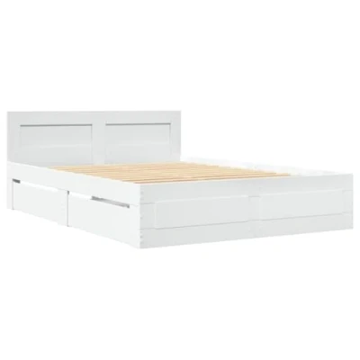 vidaXL Bed Frame with Headboard Double, White, Engineered Wood, 140x190 cm, Slatted Base, Storage Drawers, Modern Style