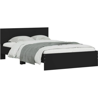 vidaXL Bed Frame with Headboard Engineered Wood Base Modern Black 120x190 cm Plywood Slats Small Double for Bedroom Mattress Not Included