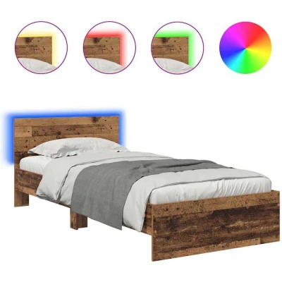 vidaXL Bed Frame with Headboard Old Wood 90 x 200 cm Engineered