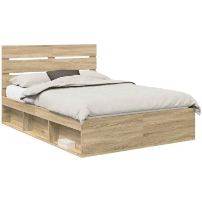 vidaXL Bed Frame with Headboard Sonoma 160 x 200 cm Solid Pine Wood