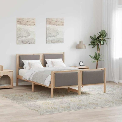 ManoManoGeneral description This Modern Bed Frame is an exquisite addition to any bedroom, effortlessly merging style and functionality. Its rectangular shape embodies contemporary elegance, making it an ideal choice for anyone seeking a sleek look and substantial presence in the bedroom. Whether for winter's coziness or summer's coolness, this bed frame is adaptable, creating a statement piece in any seasonal setup. Its overall appearance is augmented by the clean lines and dynamic styling, ready to set the tone of a vibrant bedroom setting. Technical specifications Colour: Taupe Material: Fabric Overall dimensions: 209.5 x 165.5 x 85.5 cm (L x W x H) Weight: 17.9 kg Bed height: 31 cm Frame material: Solid pine wood Filling material: Foam Indoor use only Compatibility and accessories Delivery contains: 1 x Bed frame Assembly required: Yes Other information