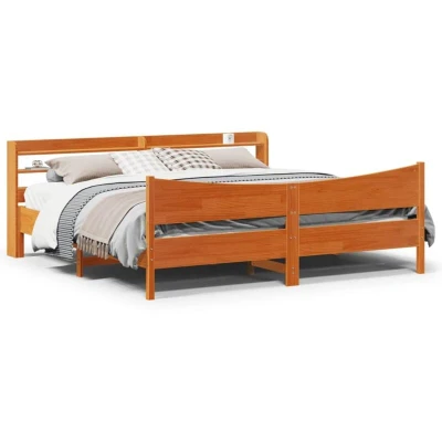 vidaXL Bed Frame with Headboard Wax Brown 180x200 cm Super King Solid Wood Pine