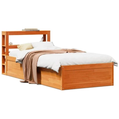 vidaXL Bed Frame with Headboard Wax Brown 75x190 cm Small Single Solid Wood Pine