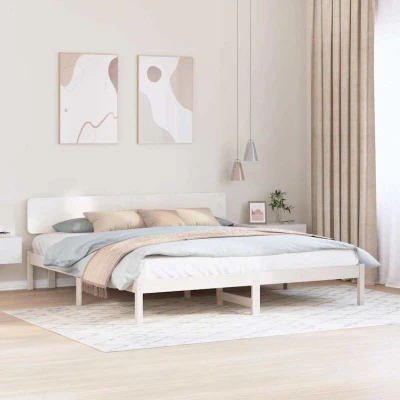 ManoManoGeneral description This Solid Pine Wood Bed Frame with Headboard is perfect for fans of contemporary design. It adds a touch of elegance to any bedroom with its sleek lines and smooth matte finish, complementing modern decor. The frame provides solid support without the need for a box spring, making it an excellent choice for those seeking stability and strength. Technical specifications Material: Solid pine wood Colour: White Overall dimensions: 206.5 x 180.5 x 74 cm (L x W x H) Mattress size: King Has slatted frame: Yes Assembly required: Yes EAN: 8721288633804 SKU: 872096 Brand: vidaXL Other information