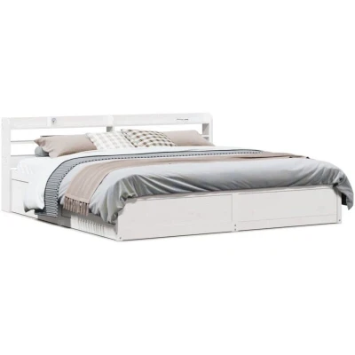 vidaXL Bed Frame with Headboard White 200x200 cm Solid Wood Pine