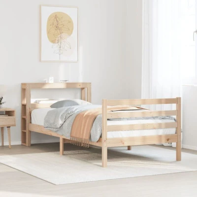 ManoManoGeneral description Enjoy a good night's sleep in this wooden bed frame! It makes a practical and decorative addition to your interior. The solid pine wood construction provides a beautiful natural aesthetic, with a straight grain and rustic knots that enhance its charm. The sturdy frame ensures stability, while the plywood slats offer excellent weight distribution, keeping your mattress securely in place. Technical specifications Bed frame material: Solid pine wood (untreated) Slat material: Plywood Overall dimensions: 224.5 x 106 x 82 cm (L x W x H) Suitable mattress size: 100 x 200 cm (W x L) (mattress not included) Headboard dimensions: 106 x 19 x 82 cm (L x W x H) With storage shelves Assembly required: Yes Delivery contains: 1 x Bed frame, 1 x Headboard SKU: 3305939 Usage This single bed is ideal for small spaces, multi-functional rooms, single sleepers, and older children. The headboard provides excellent back support for sitting up in bed to read or watch TV. The sleek