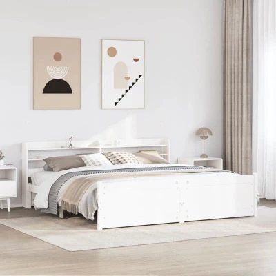 ManoManoGeneral description Enjoy a good night's sleep in this wooden bed frame! It makes a practical and decorative addition to your interior. The bed frame is made of solid pine wood, which is a beautiful natural material with a straight grain and rustic knots. The sturdy wooden frame ensures stability, while the plywood slats provide good weight distribution, keeping the mattress in place during sleep. The functional headboard and footboard help maintain mattress position and offer excellent back support for sitting up in bed. Additionally, the sleek headboard features two convenient shelves for storing nighttime essentials. Technical specifications Colour: White Bed frame material: Solid pine wood Slat material: Plywood Overall dimensions: 218 x 190 x 82 cm (L x W x H) Suitable mattress size: 180 x 200 cm Super King (W x L) (mattress not included) Headboard dimensions: 190 x 16 x 82 cm (L x W x H) With storage shelves Assembly required: Yes Delivery contains: 1 x Bed frame with footboard,