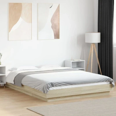 vidaXL Bed Frame with LED Lights without Mattress Sonoma Oak 135x190cm