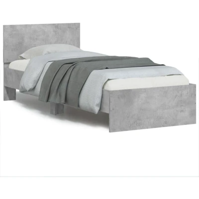 vidaXL Bed Frame with LED Single 90x200 cm, Engineered Wood, Concrete Grey, Modern Bedroom Furniture Headboard Support