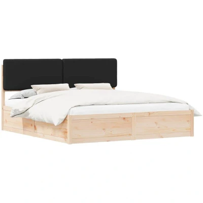 ManoManoThis Wooden Bed Frame with Upholstered Headboard transforms your bedroom into a stylish sanctuary. With its modern design characterized by clean lines and minimal ornamentation, it sits perfectly within contemporary spaces. The bed frame is crafted from Solid Pine wood, providing a sturdy and appealing base that promises longevity amidst regular use. Ideal for minimalistic settings, this piece caters to those who value simplicity, comfort, and style, acting as the central feature in any bedroom arrangement. Premium Solid Pine Wood: Renowned for its robustness, the bed frame's primary construction material offers not only sublime support but also an elegant texture. Solid Pine wood is selected for its sustainability and ability to maintain appearance over time, providing both aesthetic pleasure and practical durability in one neat package. Upholstered Headboard: Adding a touch of softness to the sturdy frame, the headboard brings enhanced comfort. The foam material ensures that bedtime