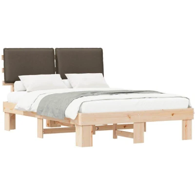 ManoManoThis Wooden Bed Frame with Upholstered Headboard showcases a modern design that combines functionality and simplicity in a sleek silhouette. Crafted for those who appreciate clean lines and minimal ornamentation, the frame provides a sturdy sleep solution suitable for any bedroom decor. Solid Pine Construction The bed frame is constructed from solid pine wood, known for its durability and resistance to wear. The wood's natural grain and smooth finish add to the product's appeal, ensuring it complements a variety of interior designs by bringing a touch of natural warmth. Upholstered Foam Headboard Featuring a foam headboard, this bed frame enhances comfort and support, acting as a soft, cushioned backrest ideal for reading or relaxing. With clean lines, the headboard adds a modern feel to the room while offering practical benefits of ease of maintenance with a removable, washable cover. Platform Slatted Frame Engineered with a platform slatted frame, the bed provides firm, even support