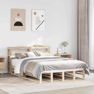 VidaXLEnjoy a good night's sleep in this wooden bed frame! It makes a practical and decorative addition to your interior. Stable and long-lasting frame: Solid pinewood is known for its strength and durability. Its straight grains and distinctive knots contribute to its rustic charm.Ample storage space: This sleek headboard features convenient shelves, offering ample storage space to keep all your nighttime essentials within easy reach.Versatile headboard: This double bed frame comes with a headboard that provides excellent back support when you sit up in bed to read or watch TV, while also serving as a decorative element.Slatted base for optimal support: The bed base is equipped with a slatted base for support and breathability for your mattress. Good to know:A mattress is not included with this bed. We do offer a various selection of mattresses. You can check our shop for a matching mattress.