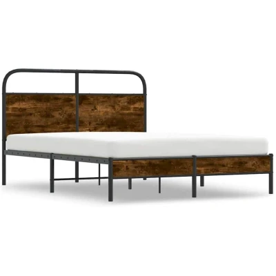 ManoManoGeneral description If you are looking for a robust bed frame for your bedroom, then this classic bed frame featuring an elegant and timeless design is the perfect choice for you! Made from steel, this bed frame offers exceptional sturdiness and stability. It is supported by sturdy legs, ensuring stability, safety, and firmness. The versatile headboard provides excellent back support when sitting up in bed to read or watch TV, while also serving as a decorative element. The slatted base ensures optimal support and breathability for your mattress. Technical specifications Colour: Smoked oak Material: Steel, engineered wood Overall dimensions: 207 x 146 x 100 cm (L x W x H) Clearance height under the bed: 27 cm Suitable mattress size: 140 x 200 cm (W x L) (mattress not included) With headboard Assembly required: Yes Other information SKU: 4100357