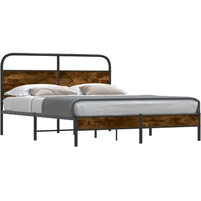 ManoManoGeneral description If you are looking for a robust bed frame for your bedroom, then this classic bed frame featuring an elegant and timeless design is the perfect choice for you! Made from steel, this bed frame offers exceptional sturdiness and stability, supported by stable and durable legs. The versatile headboard provides excellent back support when sitting up in bed, making it ideal for reading or watching TV, while also serving as a decorative element. The slatted base ensures optimal support and breathability for your mattress. Technical specifications Colour: Smoked oak Material: Steel, engineered wood Overall dimensions: 207 x 156 x 100 cm (L x W x H) Clearance height under the bed: 27 cm Suitable mattress size: 150 x 200 cm (W x L) (mattress not included) With headboard Assembly required: Yes Other information SKU: 4100358