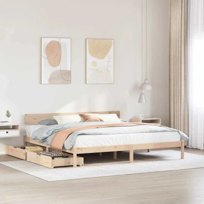 VidaXLGet a better restful night's sleep from this bed frame! It makes a welcoming addition to any bedroom. Stable and long-lasting frame: Solid pinewood is known for its strength and durability. Its straight grains and distinctive knots contribute to its rustic charm.Slatted base for optimal support: The bed frame is equipped with a slatted base for support and breathability for your mattress.Make full use of space: This bed frame features two drawers underneath, providing storage for items like extra bedding, seasonal clothing, and toys.Effortless manoeuvrability: This under-bed storage drawer features four wheels, providing smooth and effortless manoeuvrability for sliding in and out from beneath your bed. Good to know:A mattress is not included with this bed. We do offer a various selection of mattresses. You can check our shop for a matching mattress.