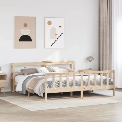 ManoManoGeneral description Enjoy a good night's sleep in this wooden bed frame! It makes a practical and decorative addition to your interior. The solid pine wood construction offers a beautiful natural material with a straight grain and rustic knots, while the plywood slats ensure good weight distribution and breathability for your mattress. The sleek headboard features two convenient shelves for ample storage space, keeping your nighttime essentials within easy reach. The freestanding design allows for effortless placement and repositioning without the need for wall installation. Technical specifications Bed frame material: Solid pinewood (untreated) Slat material: Plywood Overall dimensions: 224.5 x 206 x 82 cm (L x W x H) Suitable mattress size: 200 x 200 cm (W x L) (mattress not included) Assembly required: Yes Delivery contains: 1 x Bed frame, 1 x Headboard Other information