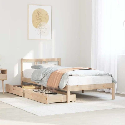 VidaXLGet a better restful night's sleep from this bed frame! It makes a welcoming addition to any bedroom. Stable and long-lasting frame: Solid pinewood is known for its strength and durability. Its straight grains and distinctive knots contribute to its rustic charm.Slatted base for optimal support: The bed frame is equipped with a slatted base for support and breathability for your mattress.Make full use of space: This bed frame features two drawers underneath, providing storage for items like extra bedding, seasonal clothing, and toys.Effortless manoeuvrability: This under-bed storage drawer features four wheels, providing smooth and effortless manoeuvrability for sliding in and out from beneath your bed. Good to know:A mattress is not included with this bed. We do offer a various selection of mattresses. You can check our shop for a matching mattress.