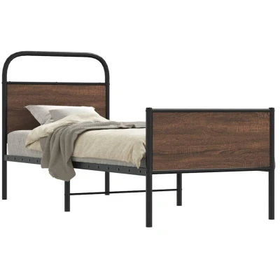 General description If you are looking for a robust bed frame for your bedroom, then this classic bed frame featuring an elegant and timeless design is the perfect choice for you! The bed frame is made from steel, an exceptionally hard and strong material that offers exceptional sturdiness and stability. It is supported by sturdy legs, ensuring stability, safety, and firmness. The headboard and footboard keep your mattress in place, while the headboard provides excellent back support when sitting up in bed to read or watch TV. The bed frame is equipped with a slatted base for optimal support and breathability for your mattress. Technical specifications Colour: Brown oak Material: Steel, engineered wood Overall dimensions: 207 x 85 x 100 cm (L x W x H) Clearance height under the bed: 27 cm Suitable mattress size: 80 x 200 cm (W x L) (mattress is not included) With headboard and footboard Assembly required: Yes Other information A mattress is not included with this bed. We offer a