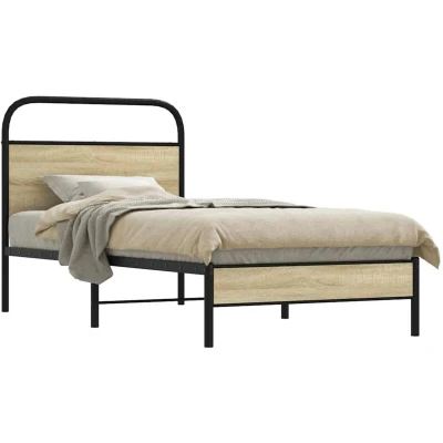 General description If you are looking for a robust bed frame for your bedroom, then this classic bed frame featuring an elegant and timeless design is the perfect choice for you! Made from steel, this bed frame offers exceptional sturdiness and stability, supported by stable and durable legs. The versatile headboard provides excellent back support when sitting up in bed, making it ideal for reading or watching TV, while also serving as a decorative element. The slatted base ensures optimal support and breathability for your mattress. Technical specifications Colour: Sonoma oak Material: Steel, engineered wood Overall dimensions: 207 x 85 x 100 cm (L x W x H) Clearance height under the bed: 27 cm Suitable mattress size: 80 x 200 cm (W x L) (mattress not included) With headboard Assembly required: Yes Other information A mattress is not included with this bed. You can check our shop for a matching mattress.