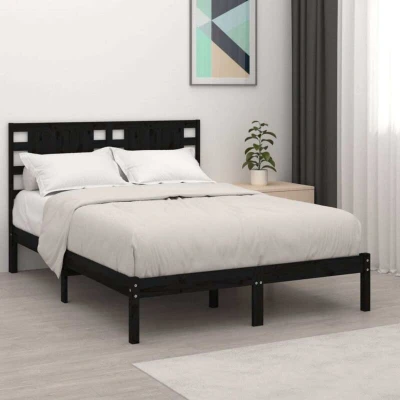 vidaXL Bed Frame without Mattress Black 140x190 cm Solid Wood Pine
