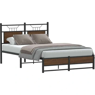 General description Get a better restful night's sleep from this bed frame! It makes a welcoming addition to any bedroom. The bedstead comes with a headboard that provides excellent back support when you sit up in bed to read or watch TV, while also serving as a decorative element. For convenience, the bed base has extra space underneath to keep your storage boxes out of sight. The metal bed frame is equipped with a slatted base for support and breathability for your mattress. Technical specifications Colour: Brown oak Material: Engineered wood and steel Overall dimensions: 196 x 126 x 91.5 cm (L x W x H) Clearance height under the bed: 27 cm Suitable mattress size: 120 x 190 cm Small Double (mattress is not included) With headboard Assembly required: Yes Other information A mattress is not included with this bed. We do offer a various selection of mattresses. You can check our shop for a matching mattress. SKU: 4107013