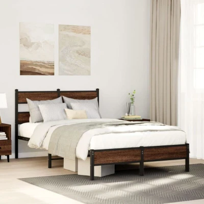 vidaXL Bed Frame without Mattress Brown Oak 120x190 cm Small Double Engineered Wood