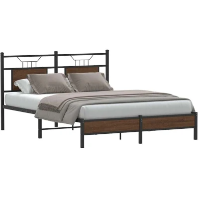 ManoManoGeneral description Get a better restful night's sleep with this stylish bed frame! It makes a welcoming addition to any bedroom, combining functionality with a modern design. Technical specifications Colour: Brown oak Material: Engineered wood and steel Overall dimensions: 207 x 157 x 91.5 cm (L x W x H) Clearance height under the bed: 27 cm Suitable mattress size: 150 x 200 cm King Size (mattress not included) With headboard Assembly required: Yes Compatibility and accessories A mattress is not included with this bed. A variety of mattresses are available in our shop for a perfect match. Other information