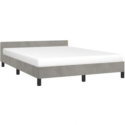 Get a better restful night's sleep from this bed frame with headboard! It makes a welcoming addition to any bedroom. Soft velvet: Velvet is a soft, luxurious fabric that is recognised by its dense pile of evenly cut fibres that have a smooth nap. Velvet fabric features a distinctive soft feel, making it comfortable to touch. Supportive legs: The bed is supported by sturdy legs, which ensure its stability, safety and firmness. Plywood slats: The plywood slats provide good weight distribution, ensuring that the mattress stays in place with every twist and turn of your body during sleep. Note: The delivery includes a bed frame only. The mattress is not included. You can check our shop for the matching mattresses. Each product comes with an assembly manual in the box for easy assembly. Good to know: To save space, some parts or cushions are packed inside the furniture—check zipped compartments or beneath the seat cover for any hidden components. Colour: Light grey Material: Velvet (100%