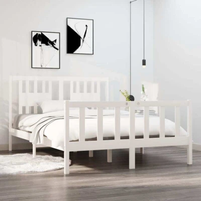 ManoManoGeneral description This classic wooden bed frame is the perfect choice for your bed and the first thing you want to relax after a long day. Made from premium solid pine wood, it features a beautiful natural material with a straight grain and rustic knots. The slats provide additional support, extending the lifetime of your mattress by absorbing most of the stress and weight. The practical headboard offers extra support and keeps your pillows in place for better sleep. Technical specifications Material: Solid pinewood Colour: White Overall dimensions: 195.5 x 146 x 100 cm (L x W x H) Headboard dimensions: 146 x 4 x 100 cm (L x W x H) Suitable mattress size: 140 x 190 cm (W x L) (mattress not included) Assembly required: Yes Delivery contains: 1 x Bed frame, 1 x Headboard SKU: 3104109 Other information