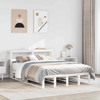 VidaXLEnjoy a good night's sleep in this wooden bed frame! It makes a practical and decorative addition to your interior. Stable and long-lasting frame: Solid pinewood is known for its strength and durability. Its straight grains and distinctive knots contribute to its rustic charm.Ample storage space: This sleek headboard features convenient shelves, offering ample storage space to keep all your nighttime essentials within easy reach.Versatile headboard: This double bed frame comes with a headboard that provides excellent back support when you sit up in bed to read or watch TV, while also serving as a decorative element.Slatted base for optimal support: The bed base is equipped with a slatted base for support and breathability for your mattress. Good to know:A mattress is not included with this bed. We do offer a various selection of mattresses. You can check our shop for a matching mattress.