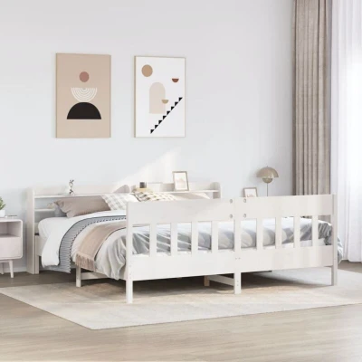 General description Get a better restful night's sleep with this stylish bed frame! It makes a welcoming addition to any bedroom, combining functionality with rustic charm. Technical specifications Colour: White Bed frame material: Solid pinewood Slat material: Plywood Overall dimensions: 218 x 190 x 82 cm (L x W x H) Suitable mattress size: 180 x 200 cm Super King (W x L) (mattress not included) With storage shelves Assembly required: Yes SKU: 3306997 Compatibility and accessories A mattress is not included with this bed. We offer a variety of mattresses that can be checked in our shop for a matching option. Installation Assembly required: Yes Usage Slatted base for optimal support and breathability for your mattress. Versatile headboard provides excellent back support for reading or watching TV, while also serving as a decorative element. Headboard features three convenient shelves for ample storage of nighttime essentials. Other information
