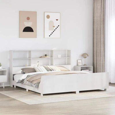 General description Get a better restful night's sleep from this bed frame! It makes a welcoming addition to any bedroom. The stable and long-lasting frame is made from solid pinewood, known for its strength and durability, while its straight grains and distinctive knots contribute to its rustic charm. With 6 convenient compartments, this headboard is a space-saving option that can replace the need for a bedside table, helping maximize your bedroom space, making it ideal for small or limited spaces. This bed frame comes with a headboard that provides excellent back support when you sit up in bed to read or watch TV, while also serving as a decorative element. The bed frame is equipped with a slatted base for support and breathability for your mattress. Technical specifications Colour: White Material: Solid pinewood, plywood Overall dimensions: 226.5 x 186 x 110 cm (L x W x H) Suitable mattress size: 180 x 200 cm Super King (W x L) (mattress not included) Max. load capacity (with
