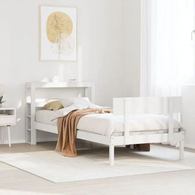 General description Enjoy a good night's sleep in this wooden bed frame! It makes a practical and decorative addition to your interior. The bed frame is made of solid pine wood, which features a beautiful natural grain and rustic knots. The plywood slats provide excellent weight distribution, ensuring your mattress receives the support and breathability it needs. The sleek headboard includes two convenient shelves for ample storage space, keeping your nighttime essentials within easy reach. Additionally, the freestanding headboard allows for effortless placement and repositioning without the need for wall installation. Technical specifications Colour: White Bed frame material: Solid pine wood Slat material: Plywood Overall dimensions: 215.5 x 96 x 82 cm (L x W x H) Suitable mattress size: 90 x 190 cm Single (W x L) (mattress not included) With storage shelves Assembly required: Yes Delivery contains: 1 x Bed frame, 1 x Headboard SKU: 3305787 Other information