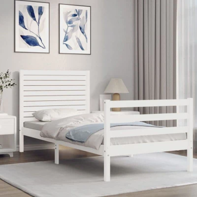 vidaXL Bed Frame without Mattress White Single Solid Wood