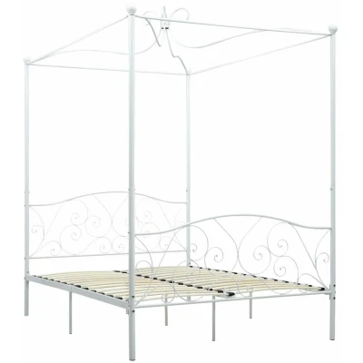 vidaXL Bed Frame without Mattress with Canopy White 140x200 cm Metal