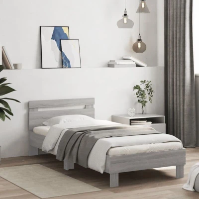vidaXL Bed Frame without Mattress with Headboard Grey Sonoma 90x200 cm