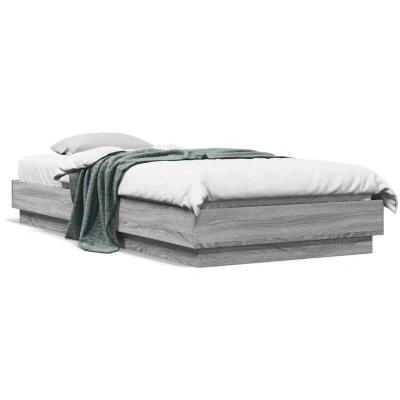 vidaXL Bed Frame without Mattress with LED Lights Grey Sonoma 100x200 cm