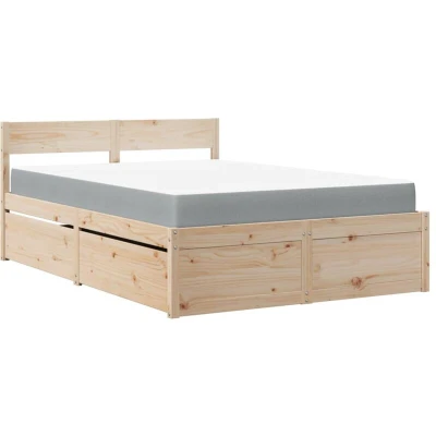 ManoManoGeneral description Featuring a simple yet timeless design, this bed is a practical and decorative addition to your bedroom. Made from solid pine wood, it showcases a beautiful natural material with a straight grain and rustic knots. The included pocket spring mattress provides personalized support, reducing motion transfer and preventing "roll-together". Additionally, the bed comes with drawers for ample storage space, helping to keep your room clean and tidy. Technical specifications Bed frame: Material: Solid pine wood (untreated) Dimensions: 205.5 x 125.5 x 78 cm (L x W x H) Drawer dimensions: 95.5 x 47 x 25.5 cm (W x D x H) Mattress: Colour: White and light grey Cover material: Fabric (100% polyester) Filling material: Pocket springs, foam Firmness: Medium Dimensions: 120 x 200 x 20 cm (W x L x H) Delivery contains: 1 x Bed frame 1 x Mattress 4 x Bed drawer Installation Assembly required: Yes Other information For hygiene reasons, the mattress cannot be returned if the packaging
